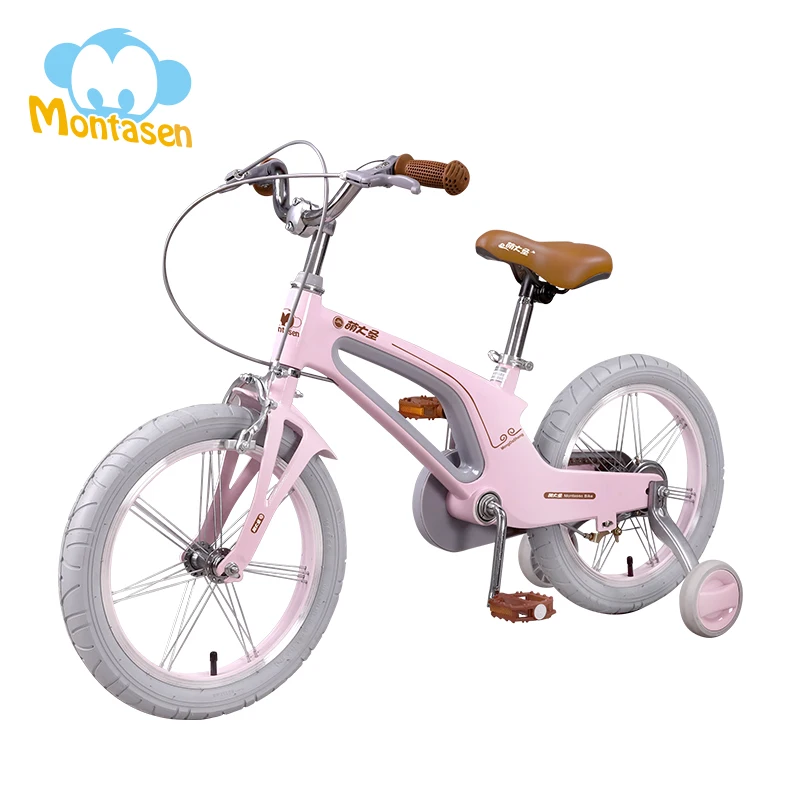 Product information:name: Montasen kids' bike material of the bicycle: magnesium alloy tyre configuration: thicken pneumatized rubber wheecolor: pink; green; yellow; white 5 advantages5 advantagesLigthweight 10000 times vibration test Environmentally- friendly paint Integrated Proprietary design Say goodbye to the disadvantages of traditional bicyclesenvironmentally- friendly material; integrated design; smooth; durable and not easy to get rustyCommon style is about 2-3 kg heavierIron is easy to get rustyUnstable and abnormal sound Various colors for you to choosesimple colors are more suitable for children Magnesium alloy bicycle is enough1. integrated design2. lightweight3. safer and more durable Product configuration:-Breathable handlebar-Bell-Comfortable V-KET -Short distance brake handlebar-Comfortable soft saddle-Integrated Magnesium alloy frame-Convenient saddle quick release-Front wheel brake -Rear wheel brake -Inflatable rubber wheel-Chain-guard-Magnesium alloy front fork -Detachable auxiliary wheel -Seven star spokes wheel-Anti- slip pedal-Sealed thread-Qixing spokes wheel Magnesium alloy is light; About 7.7kg/16.9lbDurable, firm and not easy to get rusty; lightweight Safer and durable 100000 times of vibration testNot all children's bicycles can pass the test of vibration measurement Environmentally -friendly paint Frame shows in the 2019 international bicycle display Well-designed; beautiful designwell-designed; beautiful design Product information:name: Montasen kids' bike color: pink; green; yellow; whitematerial of the bicycle: magnesium alloy tyre configuration: thicken pneumatized rubber wheelTips: Size 16inch 14inchnet weight 8.4 kg 7.7 kg crotch height 50-60 cm 45-55 cmsuitable height 105-140 cm 90-120 cmsuitable age 4-8 years old 3-7 years old Size referenceNote: 1. Four year-old or 110 cm height kid can choose 14 inches or 16 inches. 14 inches is just suitable (remove the auxiliary wheel). If you want to use it longer, you can choose 16 inches.2. Seven year-old or over 130cm height kid can choose 18 inches bike.Method to Measure the LegPlease let your kid stand straight, back against the wall. Then put a book between two legs just like this picture as if he sit on the saddle. Finally measure the distance between the top of the book and the floor. Magnesium alloy design VS. common material frameMagnesium alloyCommon material High strength bearingPeople in 80 kg weight can seat in the saddle of this bike Cost comparison of cost comparison_ magnesium, aluminum and steel Most bicycles are made of magnesium, aluminum and steel. the cost conferences are as follows:Magnesium alloy raw materialaverage price: 17850 yuan/ tonAluminium alloy raw materialaverage price: 14180 yuan/ ton Steel raw materialaverage price: 4000 yuan/ ton Magnesium alloymagnesium alloy integrated frame: just about 1.2 kg; ensuring stability and power equality Simple and elegant designPractical and comfortable experience Beautiful inside appliquesmooth; high quality; not easy to fall offlacquersmoothprintingnot easy to fall offenvironmentally- friendlycomfortable material Widen damping rubber wheelmountain roaddamping; anti- slip; comfortable; convenient Embedded- type stitching Adjustable saddleSuitable for kids' height More details: 1. Breathable and waterproof saddle High quality cotton saddle; wearproof; reduce the friction 2. Qimangxing spokes wheeluse the aerodynamics; 28 pieces spokes; firmer 3. Chain guardkeep the safety 4.Handlebar; more comfortablebetter cycling 5. Anti- slip pedalright foot sign: clockwise rotation;left foot sign: anticlockwise rotation 6.Balance training wheelThe distance apart from the ground is