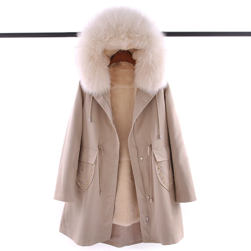 2019 Fur Parka Real Rex Rabbit Fur Lining Removable With Big Raccoon Fur Hooded Long Sleeve