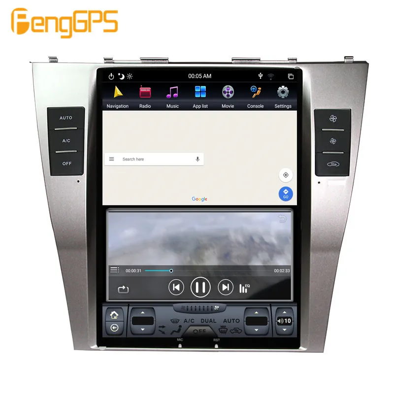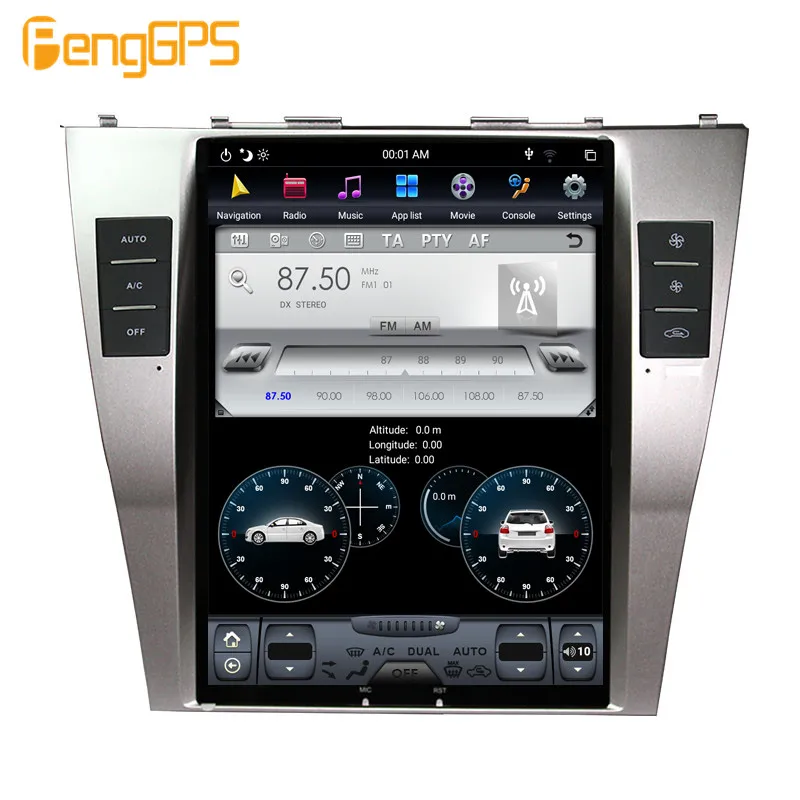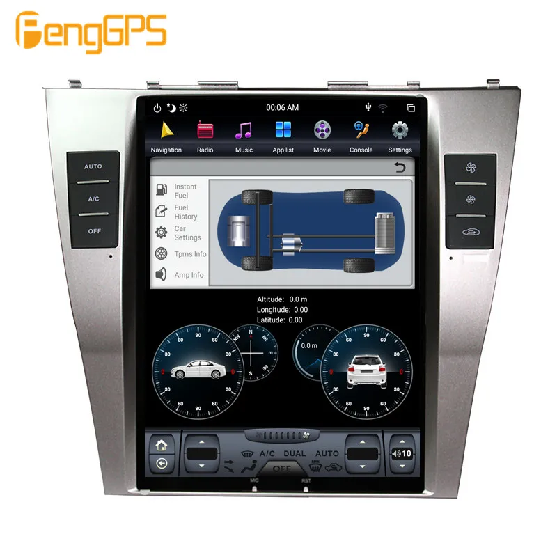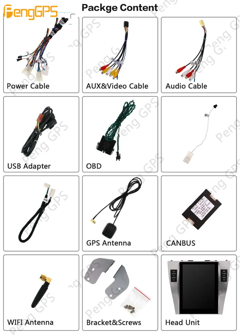Tesla style Android 9.0 Car Radio GPS Navigation For TOYOTA CAMRY 2007 - 2011 Car Stereo Head Unit Multimedia Unit System: Pure Android 9.0 OS :1. Processor: Six-Core 64bit PX62. RAM: 4GB DDR33. ROM: 32GB/64GB Features:1: Built-in DSP2: Built-in wireless CARPLAY3: Android AUTO support4: 7850 amplifier5: support voice check: English6: HDMI-that is, the headrest support7: Capacitive Multi-touch screen / HD Resolution 1920 * 1080 IPS Screen8: Bluetooth 5.0 - Three-way call support。 advanced Edition Qualcomm 5.0 Solution Supports NX TX ATTX Without Loss of Sound Quality9: HD 1080 P support + Lossless music support10: Built-in Wifi / Support 3G / 4G Network11: Android App support download and Google play store12: Video Support: WMV (VC1 Code) AVI (H.264, MPEG4, Xvid, WMV), MP4 (H.263, H.264, MPEG4), MPG (MPEG-2), m4V (H.264, MPEG4 ) Optional:1. Support DVR Function: Support DVR for the front, it will let your travel more security.2. Support External DAB Receiver (Operate from Screen Toush)3. TV support: capable of supporting DVB-T2 / ISDB-T, with our DVB-T2 / ISDB-T and connector, you can operate on our car DVD screen4. support the rear view camera, when the machine is reversed it will work automatically, it is able to display the venerate of the track.5, TPMS support: detect car tire pressure at any time, protect driving safety Package Contents:Our this product come with GPS antenna, GPS map for your country,USB adapter,Audio and video input cable, power cable...etc, all the kit for install will in the package. About the installation instructions:It's a plug-and-play installation, but we recommend that you find a local professional installation engineer or a car A&V store to install our equipment in your car so you can avoid damaging your dashboard and the host itself. Of course, if you need any support, you are free to contact us.If you are not sure if it is suitable for your car, please leave your car details.If your car dashboard is the same as in the image below, you can purchase this modle