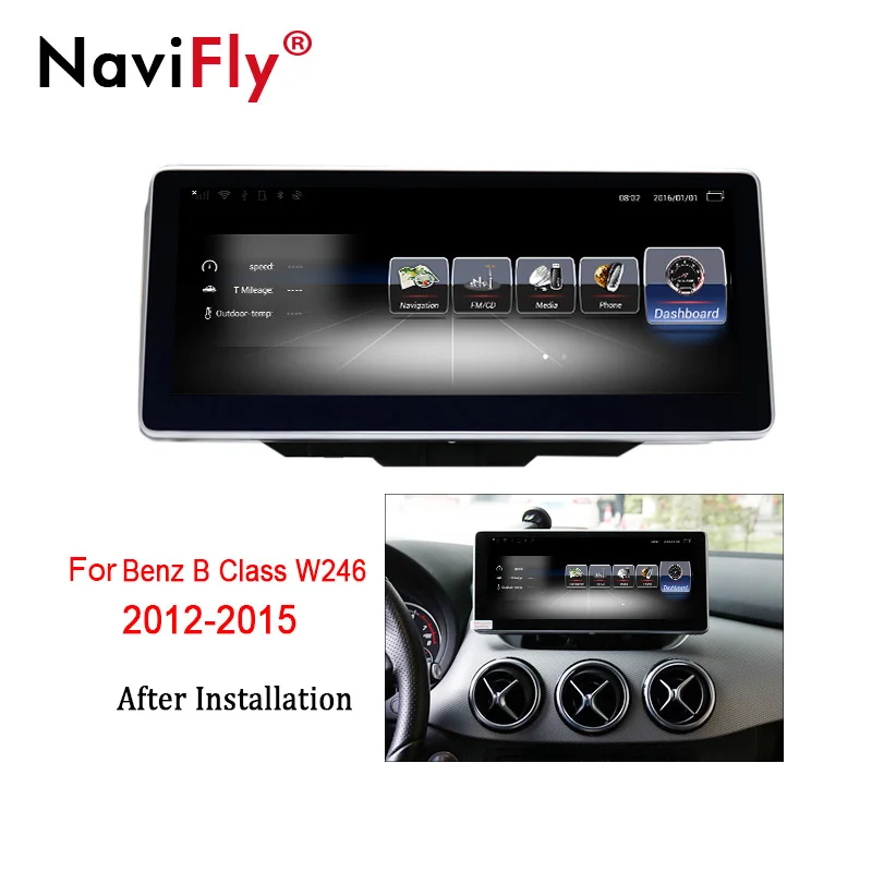 NaviFly 3+32 Android 7.1 car multimedia player for Mercedes Benz B Class W246 2012-2015 GPS navigation Video Audio Player 4G LTE Car multimediaplayer fit For ForMercedes BenzB-Class W246: 2012-2015 ForB160B180B200B220CDI NOTE:In classificationbuy the same UI withyour original radio OS: Android 7.1 CPU: Quad CoreCortex-A9 RAM: 3GB DDR3 ROM:32GB Screen: 10.25inch Capacitive and 5-point multi-touch screen Support 4G SIM Card Support WIFI hot spot shoring Built-in GPS,Support: I-GO or Sygi Supports Steering wheel control function Supports Rear View Camera input Supports Google Play Store Supports 1080P video Support Smartphone Mirror-link